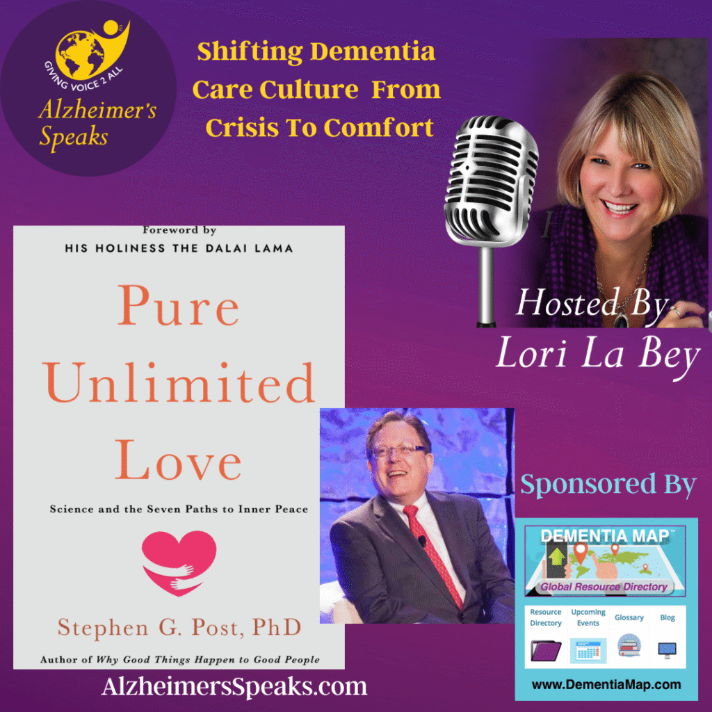 Lori La Bey talks with Stephen G. Post, who was a guest with us back in 2022 when we did a program on deeply forgetful people. For those of you unfamiliar with Stephen, he is renowned around the world for his work on the effects of love, kindness, bioethics, and dementia. This is apparent from the foreword of his new book, which was written by His Holiness the Dalai Lama!